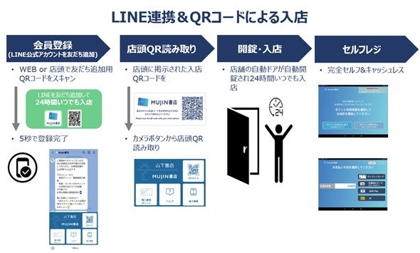 - 無人時間帯の入店管理・キャッシュレス決済に「MUJIN書店」のシステムを利用