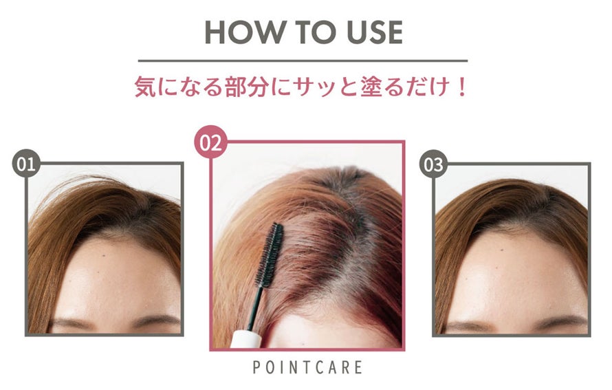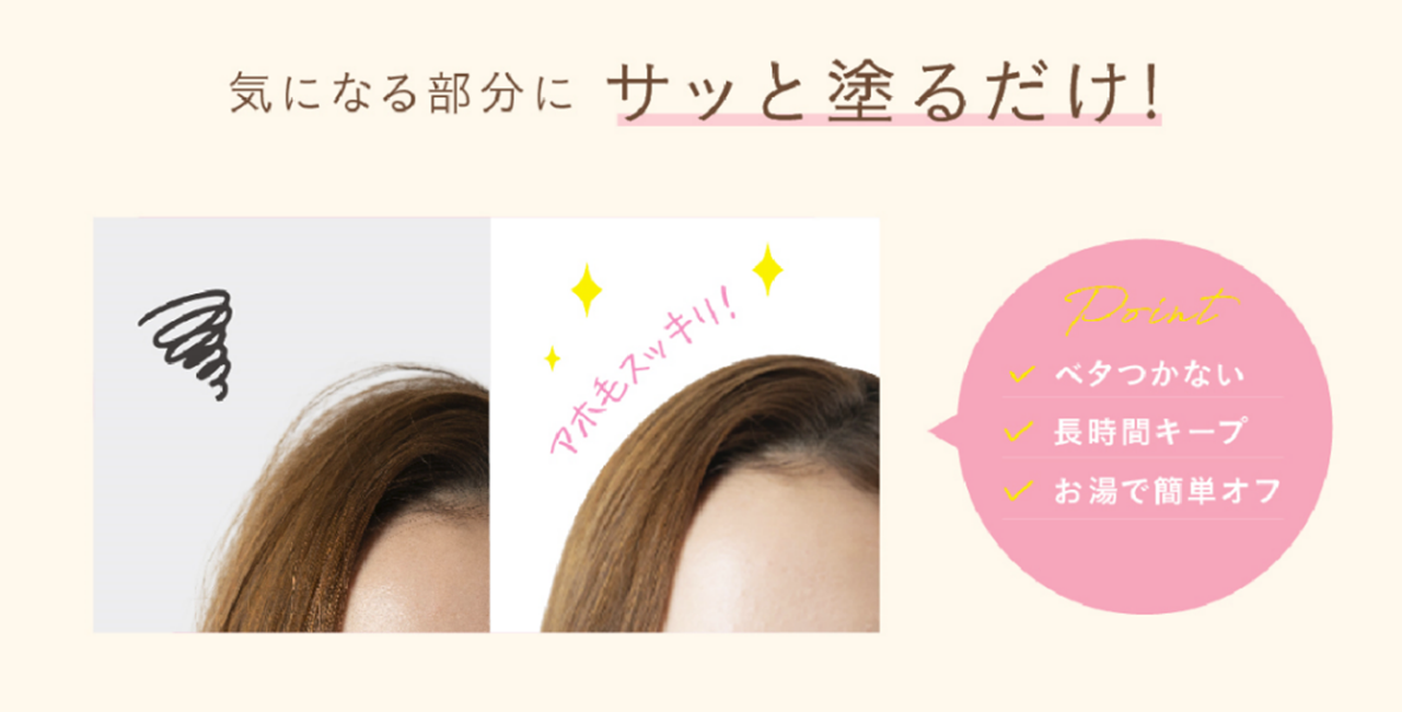・飛び出たアホ毛には、ブラシを少し浮かせ気味にし、なでるように塗布してください。
