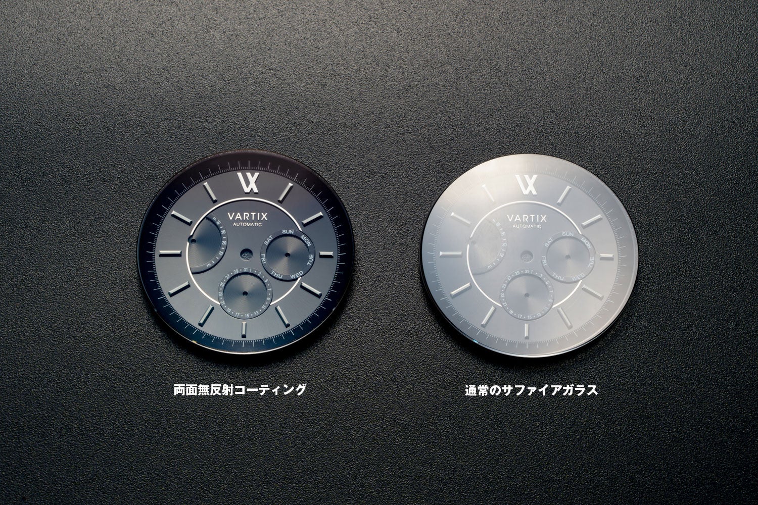 国産の両面無反射コーティングが施されたサファイアクリスタル風防