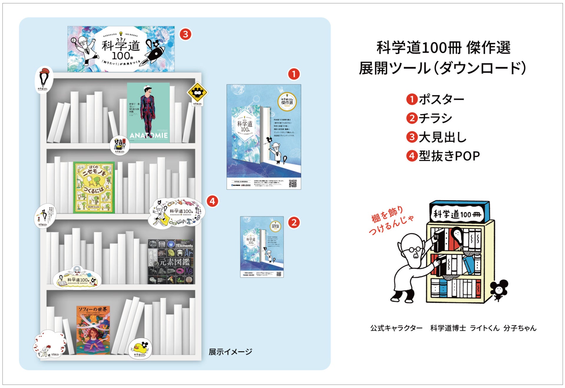 「科学道100冊 傑作選」フェアを開催したい図書館・教育機関・各種団体を募集しています。参加を希望する団体は、公式サイトからお申し込みください。ポスターやチラシ、大見出しなどをダウンロードしてご使用いただけます。参加条件など詳細は「科学道100冊」公式サイトのお問い合わせページをご覧ください。