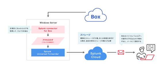 「Splunk connector for Box」は、Splunkに転送するBoxログ情報を出力するためのエコソリューションです。