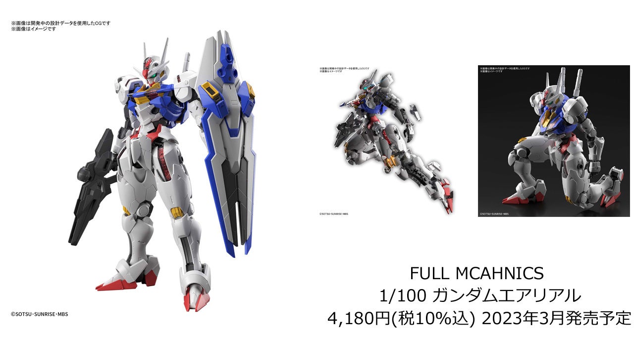 2022年10月2日(日)午後5時からMBS/TBS系全国28局ネットにて放送開始する『機動戦士ガンダム 水星の魔女』のガンプラシリーズ、ラインアップ続々登場です。モビルスーツのガンプラはもちろん、支援機やガンダムデカールなど幅広く商品化。主人公機のガンダム・エアリアルは1/144スケールのHGに続き、1/100スケールでFULL MCAHNICSでも登場します。