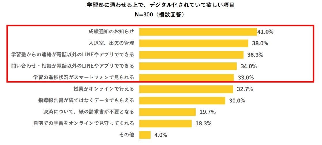 子どもを学習塾に通わせる上で、デジタル化されていて欲しい項目