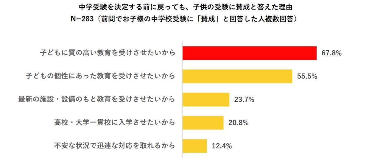 第1位は「質の高い教育を受けさせたかったから」で6割以上が回答