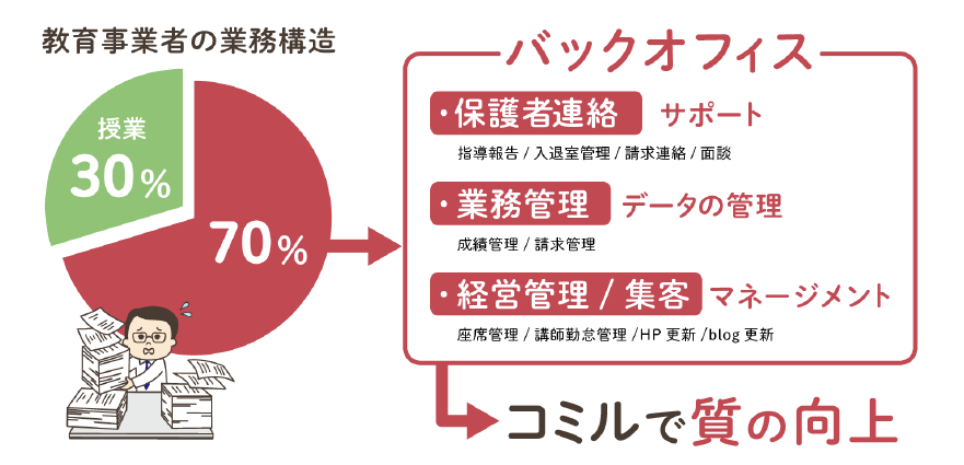 - 今回の調査結果からもおわかりの通り、塾とのコミュニケーションを求めておられる保護者に対してタイムリーな情報提供、悩みや不安に寄り添う姿勢、長期的な視点に立ったアドバイスなどを計画的かつ効率的に行っていくためにComiruというプロダクトをご活用いただければ幸いです。