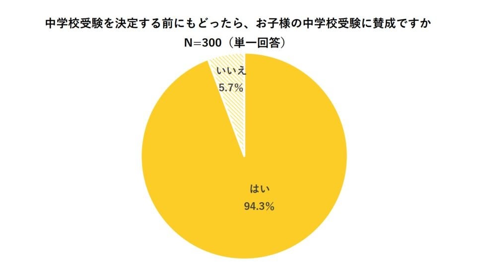 中学受験を決定する前に戻っても、また中学受験を受けさせたいと考える親の割合は9割以上