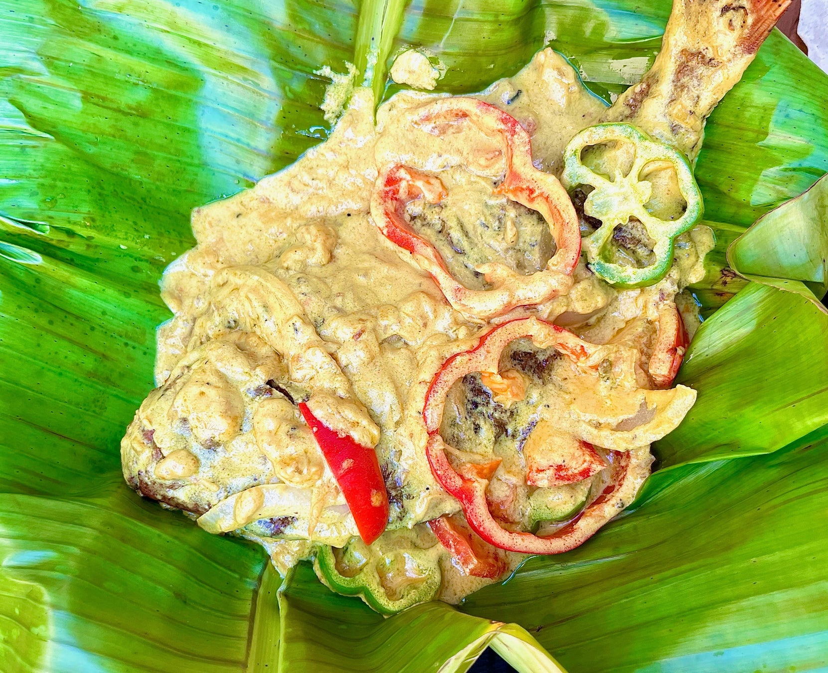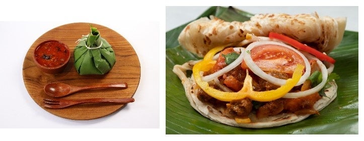 ポロッタにドライカレーを挟んでバナナの葉っぱで蒸した”キリ“のスタイルでご提供します。