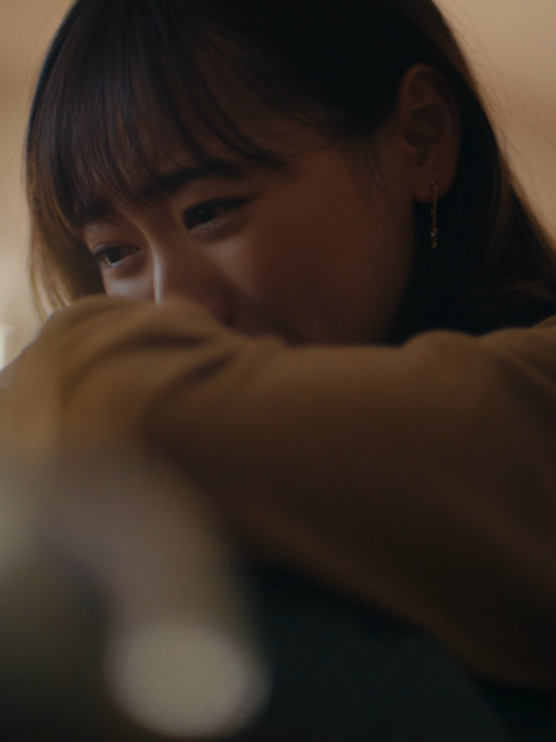 自宅の椅子に座り、失恋した様子で落ち込む福原さん。「よく頑張った、私」と膝を抱えながら涙を流します。腕時計を見ているうちに気持ちを切り替えた福原さん。気が付けばスッキリとした表情に。「失恋は、きっと。私をやさしい人にしてくれる」と微笑み、大人への一歩を踏み出した優しい表情を見せるのでした。