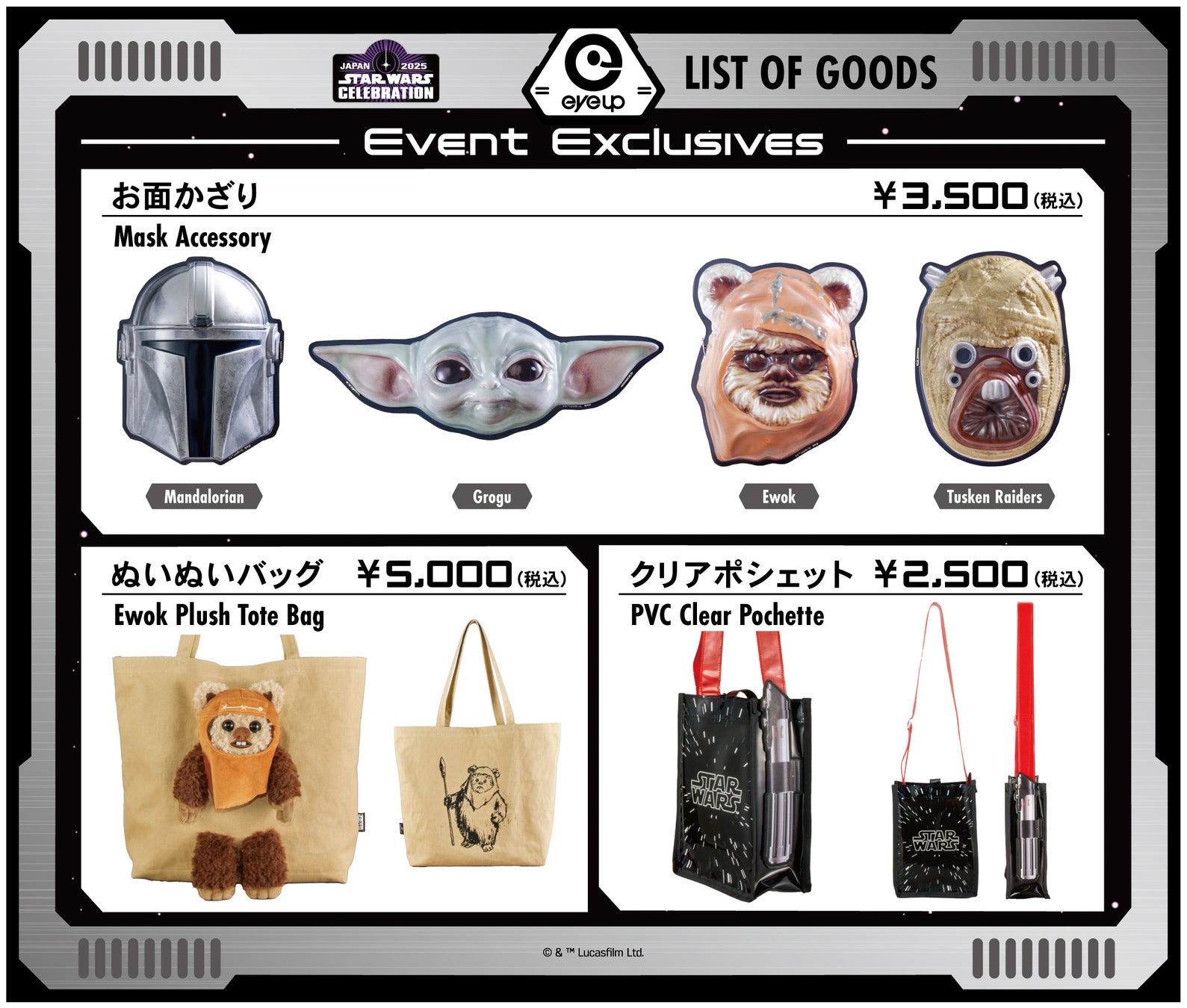 「スター・ウォーズ セレブレーション ジャパン2025」にて限定販売!精巧なデザインの"お面飾り"や、インパクト抜群の"イウォーク ぬいぬいバッグ"、サイドがライトセイバーの"クリアポシェット"など!