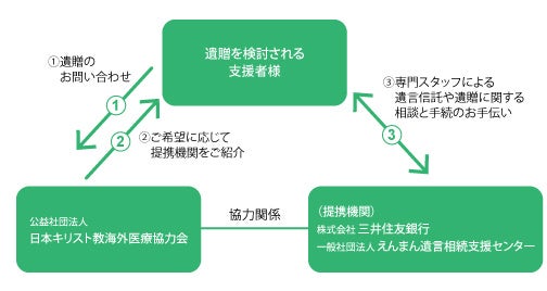 アジア・アフリカで保健医療協力をおこなっている公益社団法人日本キリスト教海外医療協力会(東京都新宿区、会長:畑野研太郎)は、株式会社三井住友銀行(東京都千代田区、頭取CEO:福留朗裕)と「遺贈希望者に対する遺言信託業務の紹介に関する協定」を締結しました。この締結により、日本キリスト教海外医療協力会は複数の専門機関との協力体制を構築し、遺贈寄付を検討している全国の方々に、専門的な相談に対応できる機関を紹介できるようになりました。