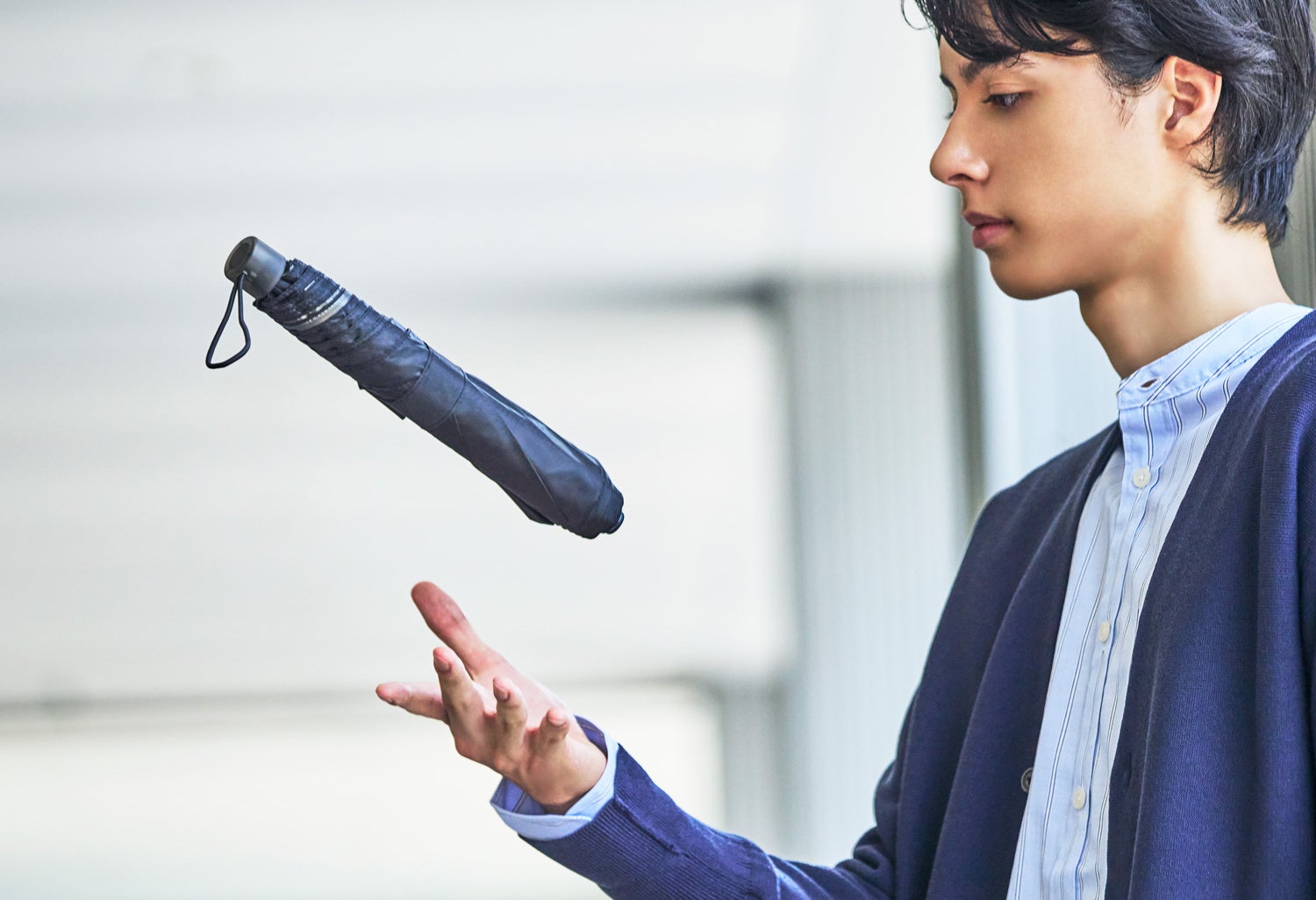 その結果、わずか厚さ35mmというスリムな形状でありながら、直径107cmという折りたたみ傘としては最大級の直径107cmを確保し、長傘に近いカバー力を発揮します。さらに、0.05mmの極薄高密度生地と特殊PUコーティングにより、UVカット率95%以上(※1)の晴雨兼用性能も備えるなど、携帯性・機能性・守備範囲を高いレベルで融合することに成功しました。