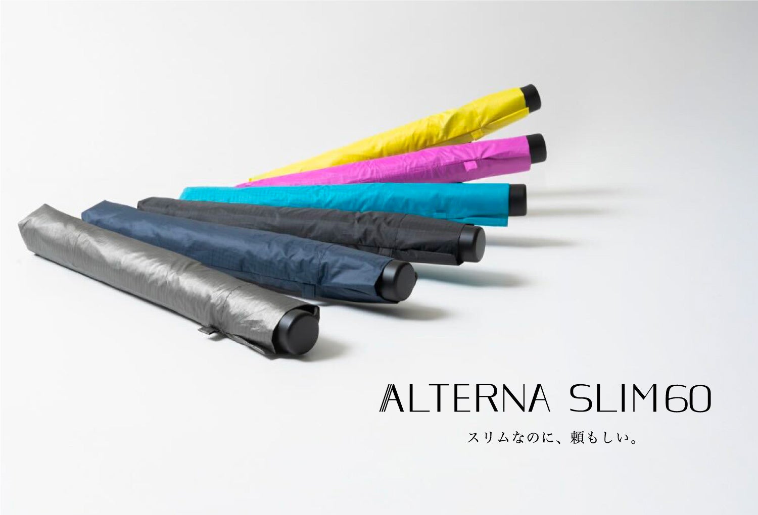 この度当社は、独自のフレーム構造設計と高密度極薄生地の採用により、傘の常識を覆す折りたたみ傘「ALTERNA SLIM60(オルタナスリム60)」を開発しました。