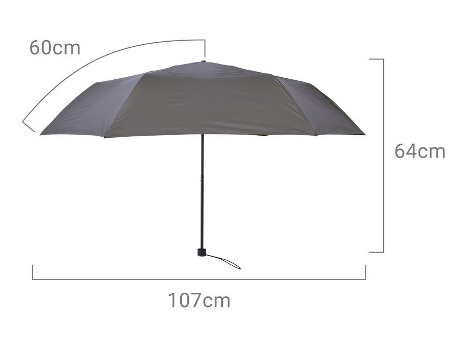 その一方で、展開時には直径107cmの広々とした傘面を実現。一般的な折りたたみ傘よりも約10cmも大きなサイズで、大きな荷物を持った時でも、しっかりと雨を避けることができます。