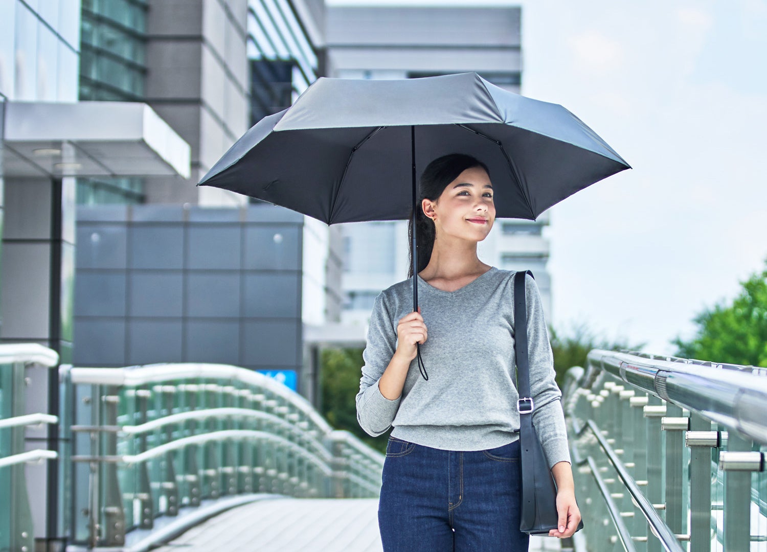 近年、紫外線は単なる"日焼け"ではなく、肌の老化や健康被害の要因として問題視されています。しかし、ビジネスにおける外回りや通勤・通学のシーンでは、日傘を使いたくても荷物になる、面倒、との理由で使われていない現実があります。
