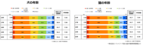 現在日本では、獣医療の高度化や飼育環境の向上などにより、ペットの高齢化が加速しています。7歳以上の高齢期のペットの割合は、犬は全体の約56%、猫は全体の約44%を占めています。