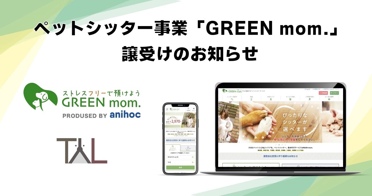 ペットの家族化を推進するTYL、株式会社カラーズよりペットシッター事業譲受