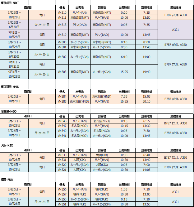 『東京成田=ホーチミン線 (VN302/303)』の運航再開を決定しました。