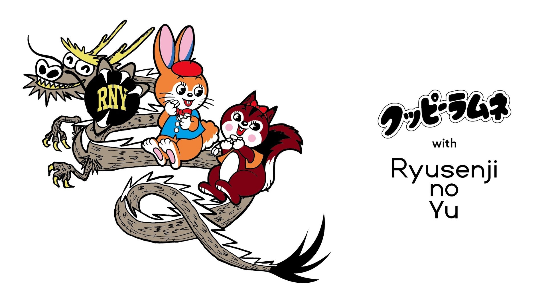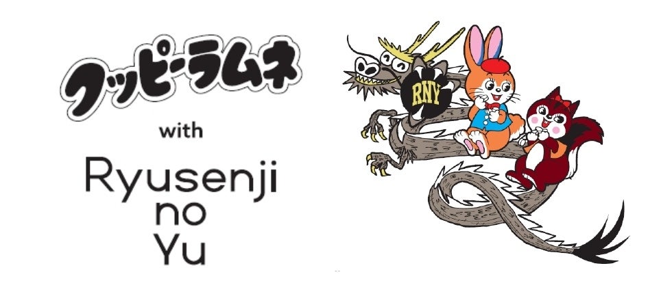 「Ryusenji no Yu × クッピーラムネ」コラボグッズは、ビームス ディレクターズバンク 室長 南馬越 一義 氏が監修。2022年6月20日㈪~9月25日㈰まで全国7店舗の「竜泉寺の湯」館内で、ポップアップストアが順次開催されます。ポップアップでは、「竜泉寺の湯」と「クッピーラムネ」のキャラクターを使用したプリントTシャツや刺繍エコバック、刺繍ポーチを販売します。「クッピーラムネ」のウサギとリスが「竜泉寺の湯」の龍の背中に乗って戯れるデザインはご当地コラボならではであり、双方のファン必見です。