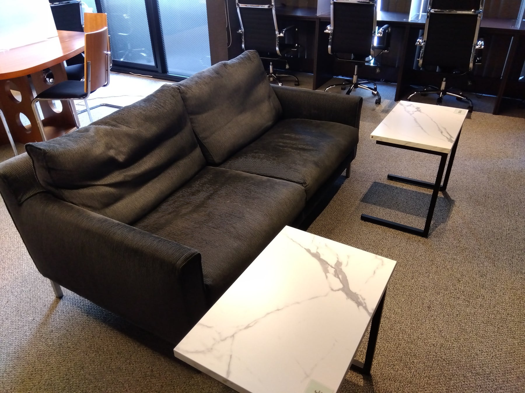 ゆったりとくつろげるソファーに、大型のサイドテーブル2卓を用意しました。