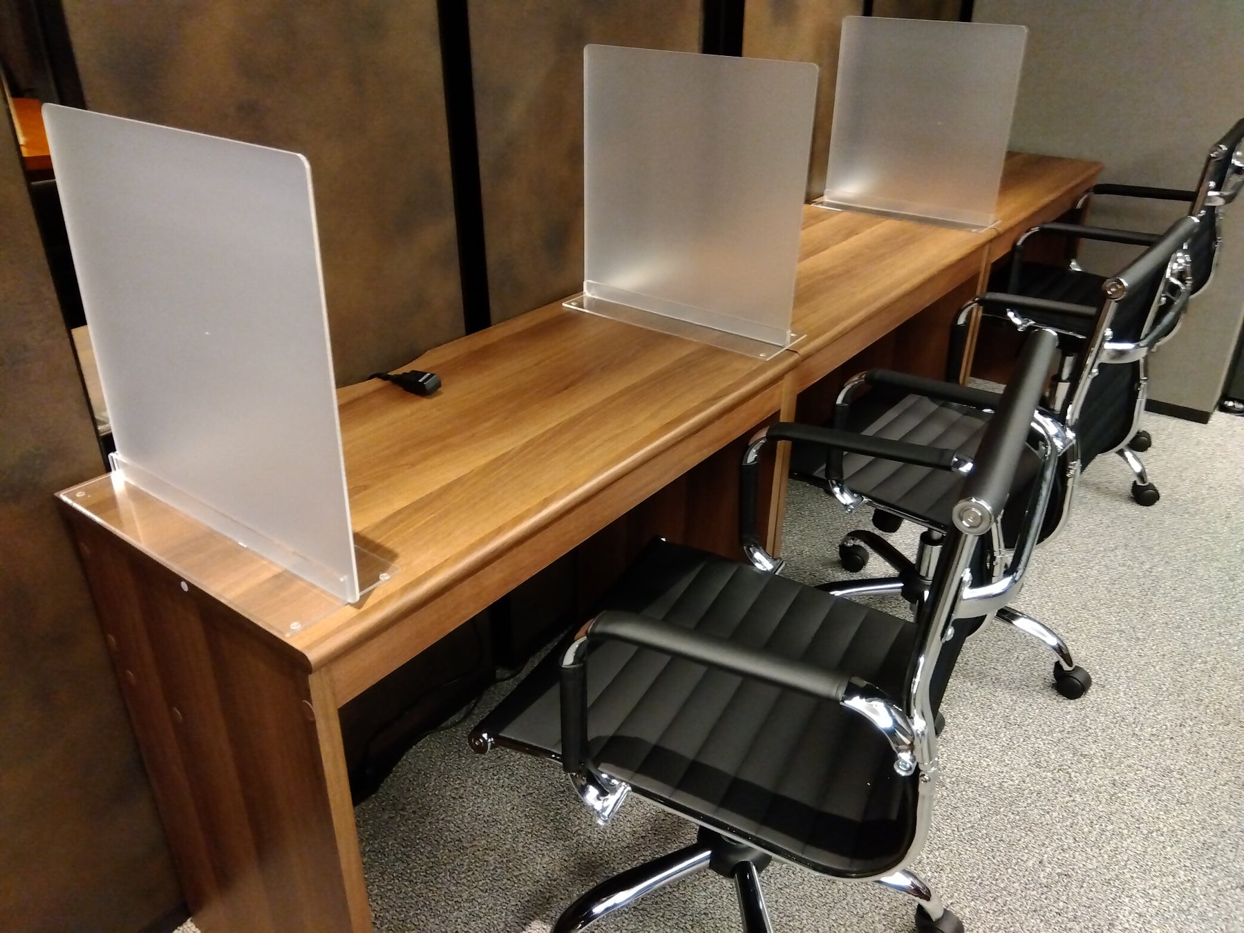 個性的な4人掛けのテーブルにパーテーションを設置しました。