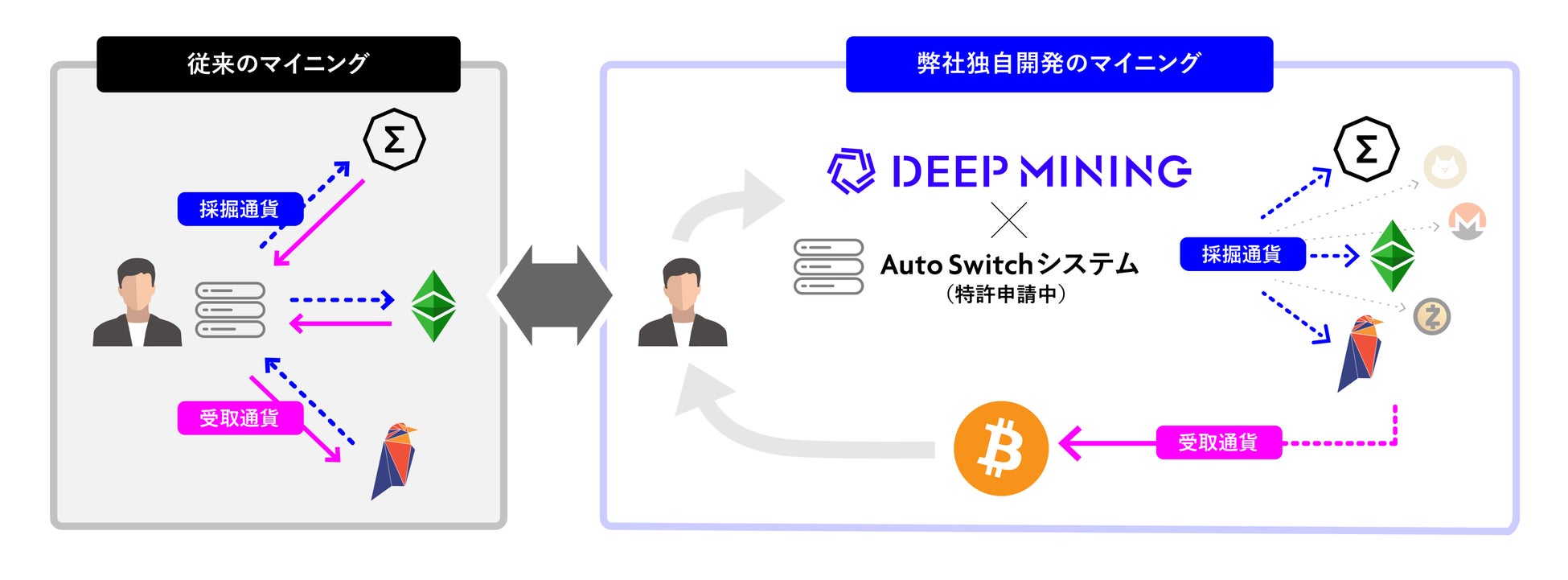 株式会社ゼロフィールド(所在地:東京都港区、代表取締役:村田敦/以下、当社)はイーサリアム(ETH)のPoS移行(マージ Merge)に備え、独自機能により複数の収益性が高い通貨から自動で選択し、採掘したマイナー通貨をBitcoinやEthereum等のメジャー通貨での受け取りを可能としたDEEP MININGとの連携開始を発表いたします。