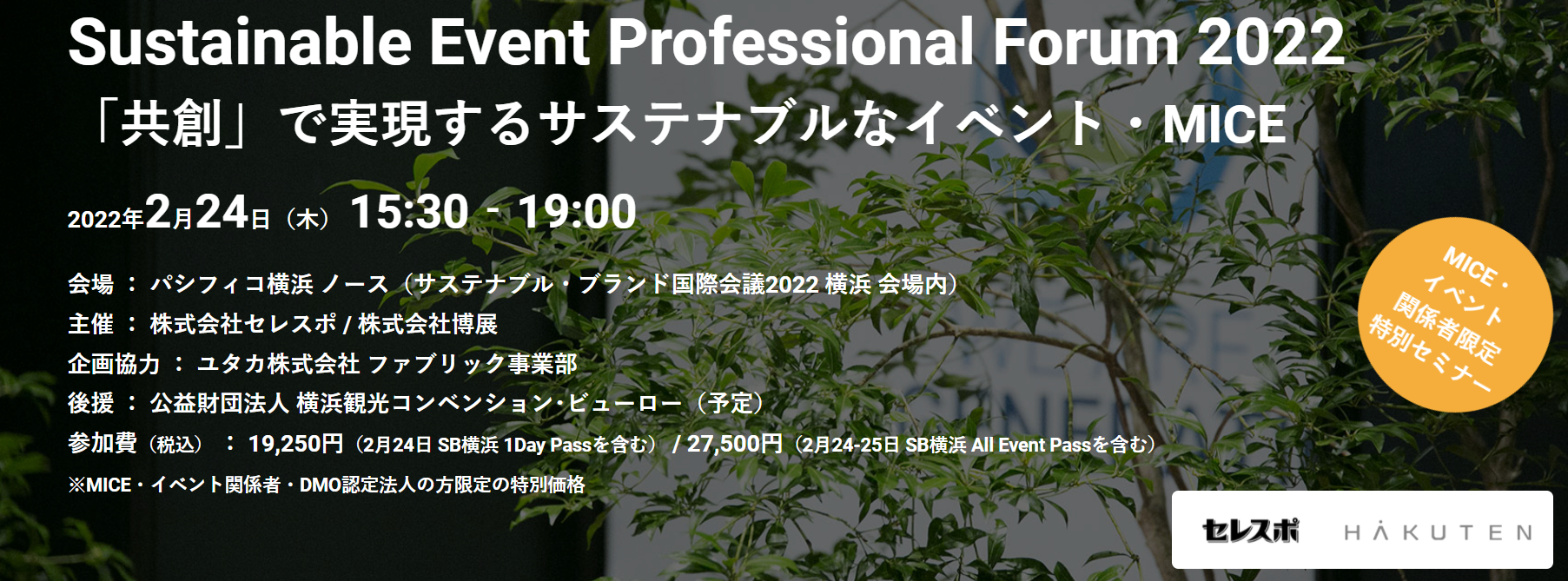 株式会社セレスポと株式会社 博展は、3回目となるMICE・イベント関係者・DMO認定法人の方限定の特別プログラム「Sustainable Event Professional Forum 2022」をSB 2022横浜 内にて開催いたします。