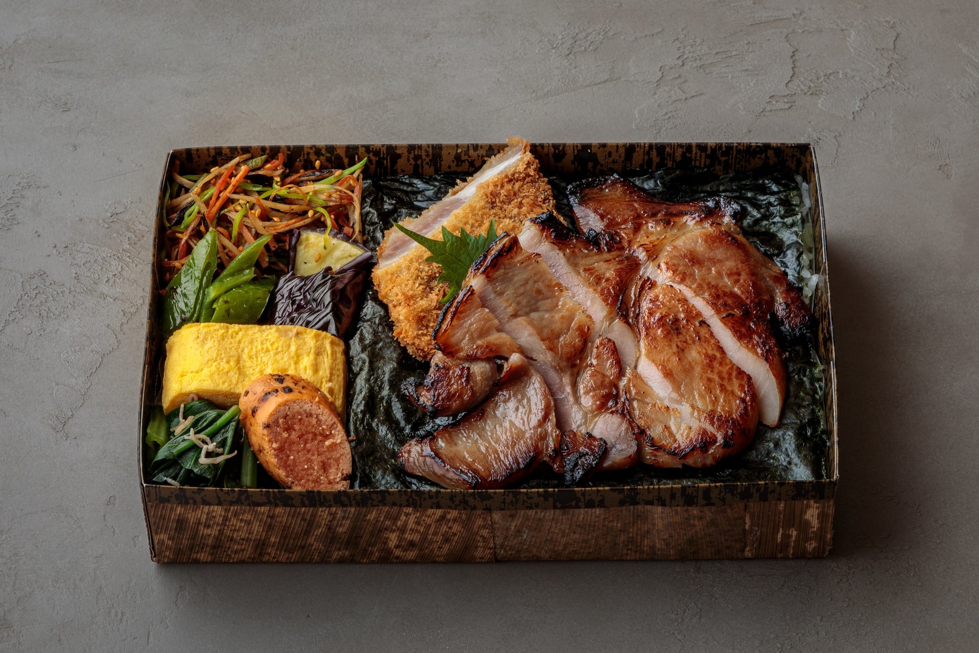 蔵みそ焼や麹みそ焼をまるごと1切使用し、こだわり素材で丁寧に仕上げたおかずを詰め込んだ、食べ進むごとに新たな味わいを楽しめる贅沢な海苔弁当です。