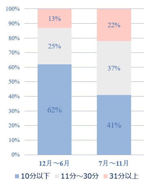 その結果、10分以下のご利用は4割に低下し、1回あたりの平均滞在時間が6分以上伸びるなど※、ファミリールームでゆっくりと過ごすご家族が増加しました。