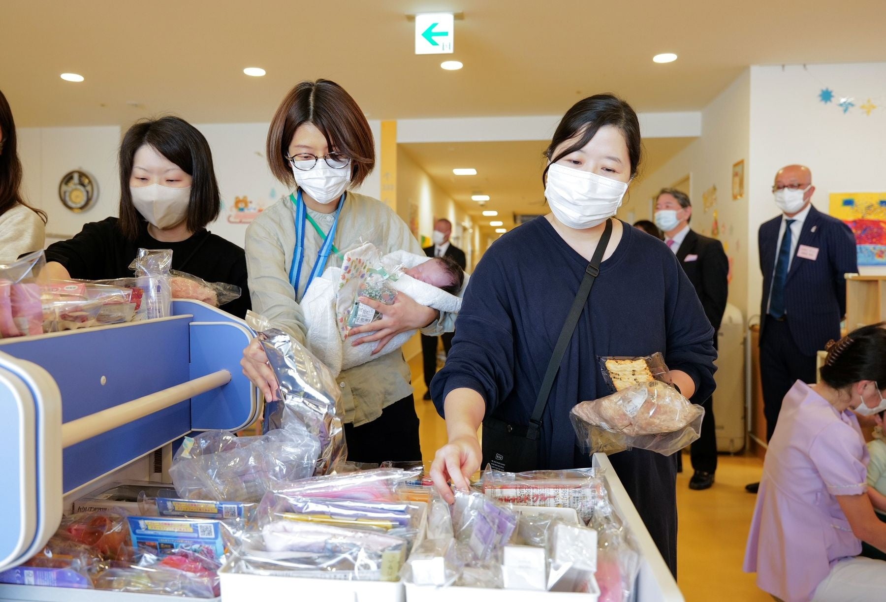イベント当日からの榊原記念病院での新たな取り組みとして、日用品やおもちゃなどの「ちいさなギフト」を病棟にて無償で配布する「ハートフルカート」の出発式を執り行いました。会場内でお披露目されたカートに、参加者から、温かい想いを込めたギフトを載せていただきました。「ハートフルカート」は、イベント後に小児病棟で初稼働。病棟内の広場に登場し、多くの子どもたちとご家族が、笑顔でギフトを選ばれていました。