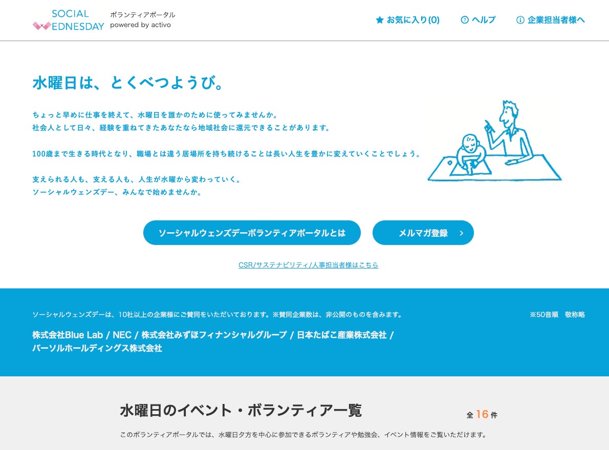 2024年11月から、経済同友会、新公益連盟らによるムーブメント「ソーシャルウェンズデー」のボランティアポータルサイトを事務局として運営。