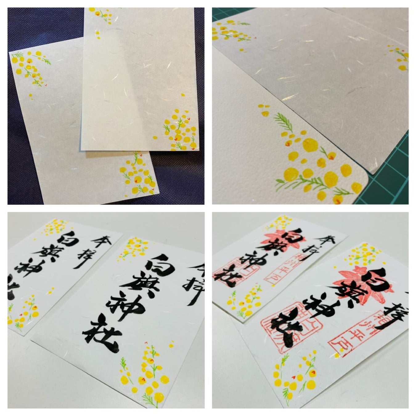 平戸白旗神社で初の試みとなる「季節限定御朱印」は、イラストまで手描きの世界で1枚しかない御朱印としてミモザの日に頒布されました。
