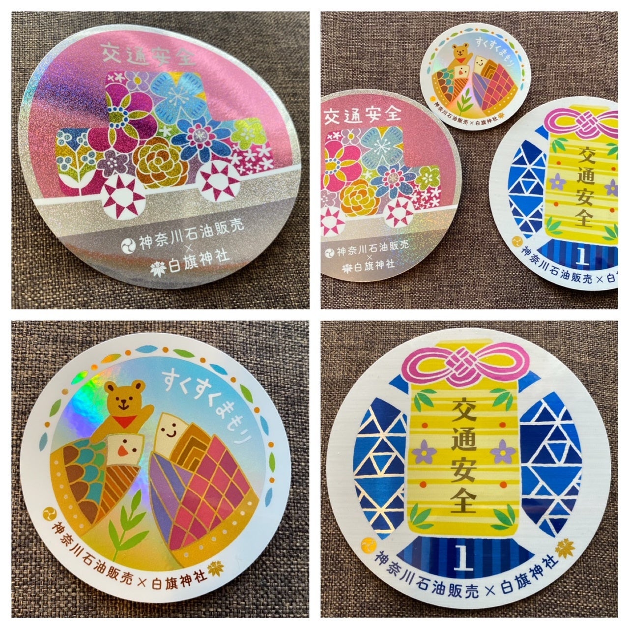 そこで、国道1号線を挟んでお向かいにある老舗の自動車整備工場「神奈川石油販売株式会社」と「平戸白旗神社」のコラボ企画「キラキラお守りステッカー」を考案し完成させました。