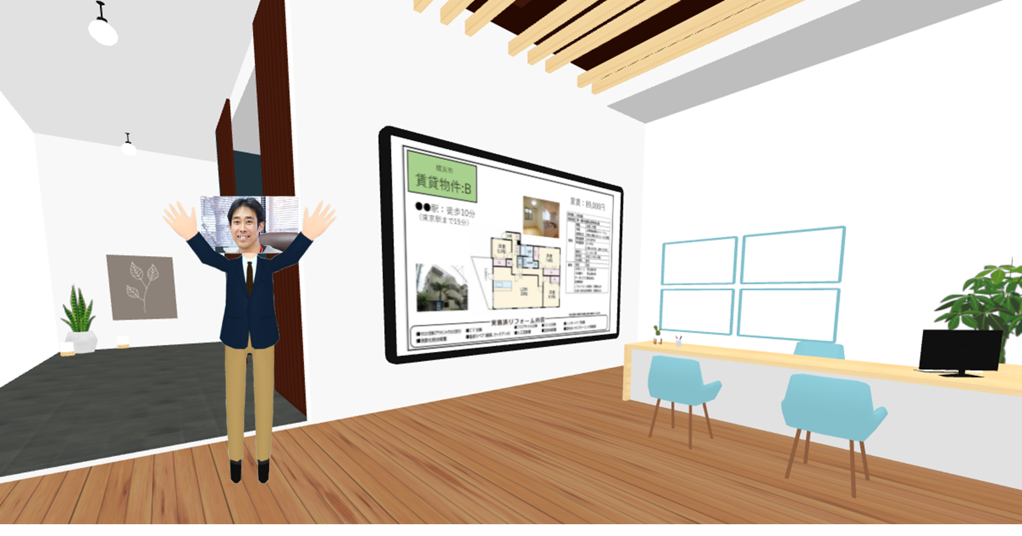 不動産賃貸の契約は実際に店舗に来ていただく必要があります。また、オンラインで物件を確認していても実際の物件を最終的には確認しますが、オンラインで物件案内を行っていることから、実際にリアルで物件確認する件数が半減しました。また、店舗に来店いただく際にはVRで一度面談していることから「楽しかった」の感想から営業がはじまり1組あたりの営業契約率も向上。さらに、土日の面談数が1日に約1.2組増やすことができた。
