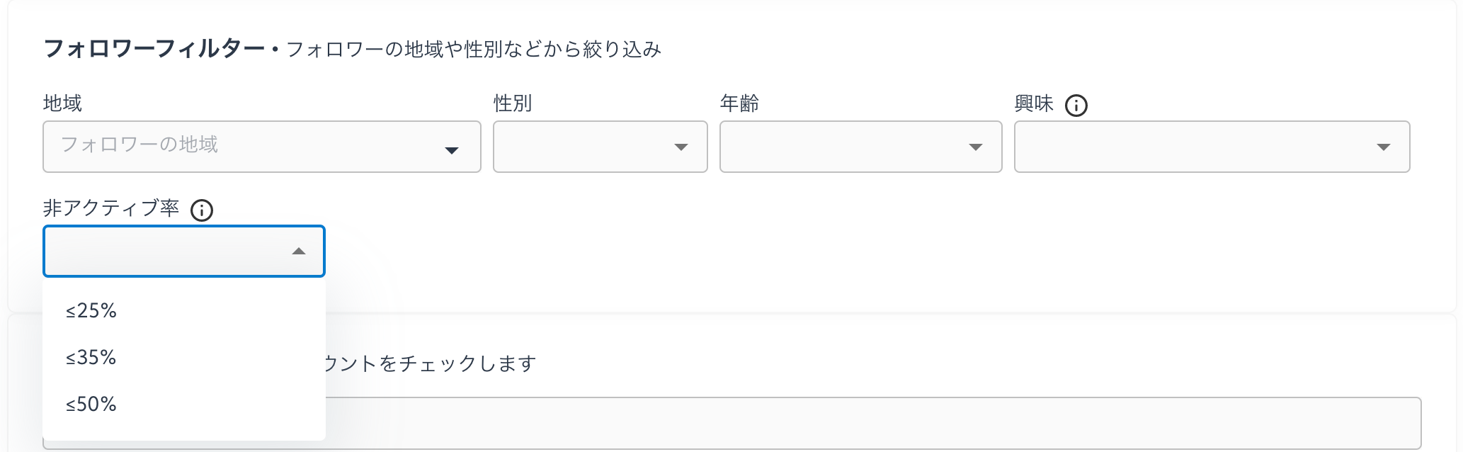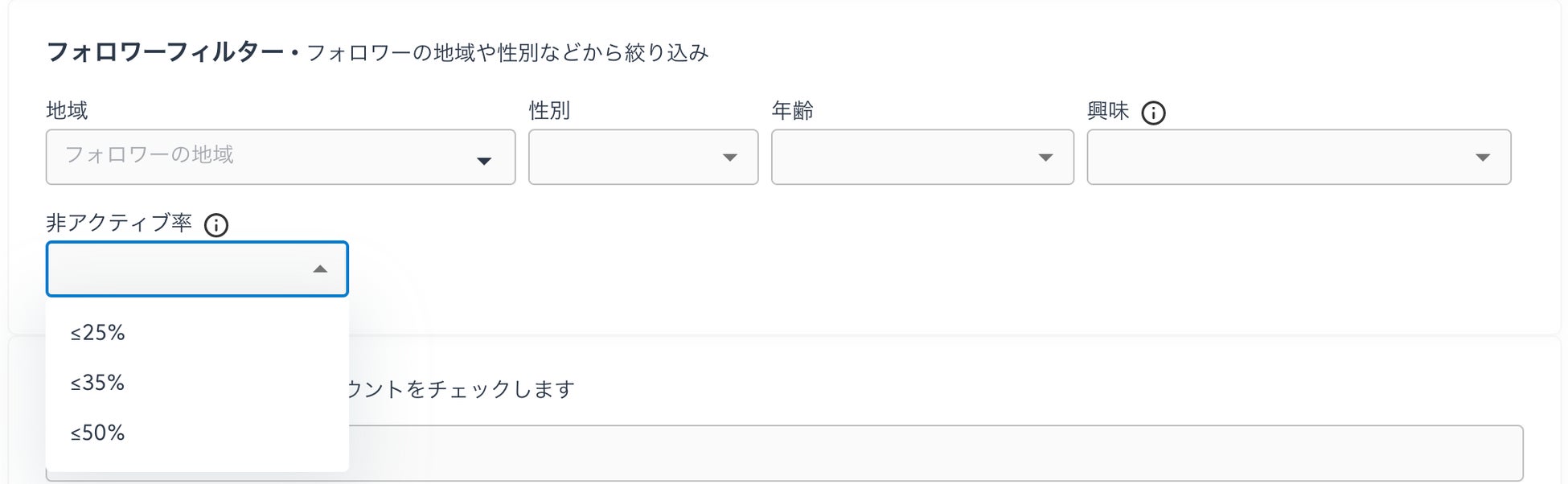 フォロワーの非アクティブ率の範囲を指定して検索することができます。