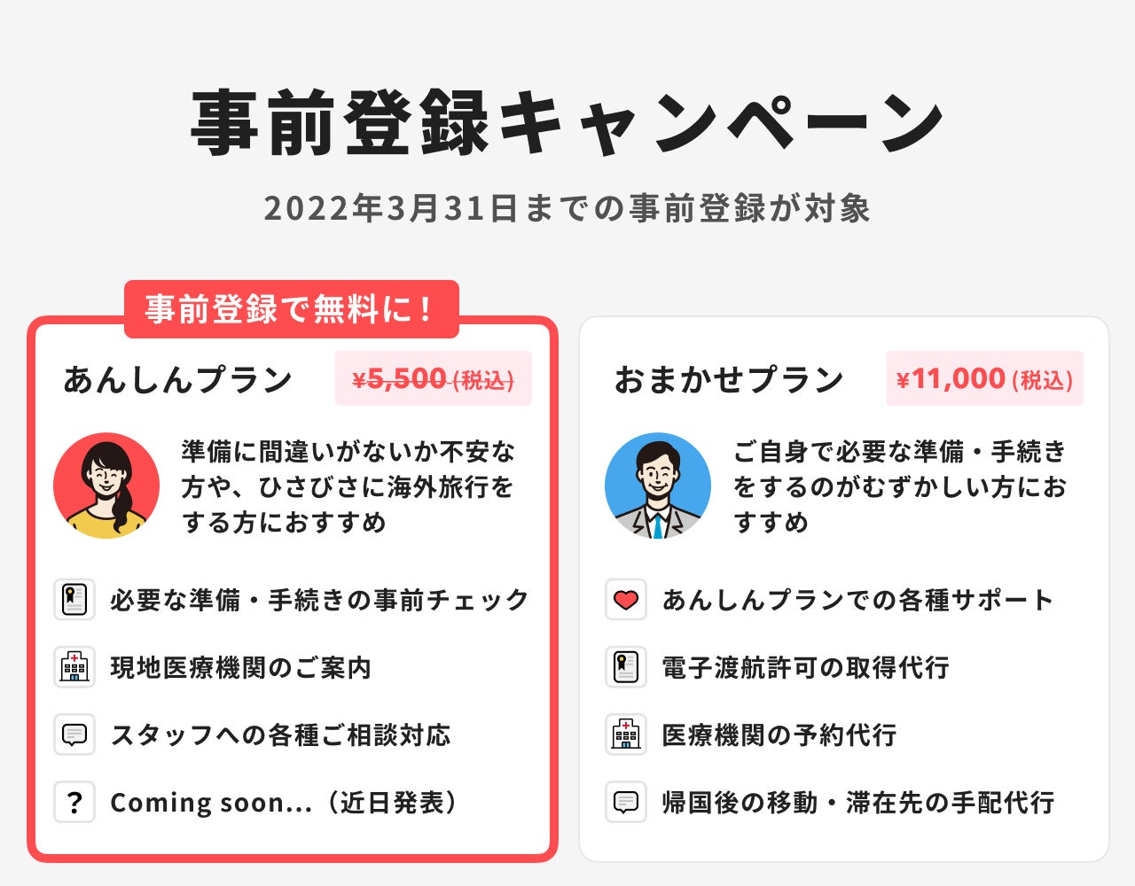株式会社Hotspring(本社:東京都台東区、代表取締役:有川 鴻哉)は、3月1日から日本帰国時の行動制限が緩和されたことを受け、海外旅行予約サービスの事前登録の受付を開始いたします。3月31日までの事前登録で旅行者向けサポート(通常5,500円のプラン)が無料になるキャンペーンを開催中。