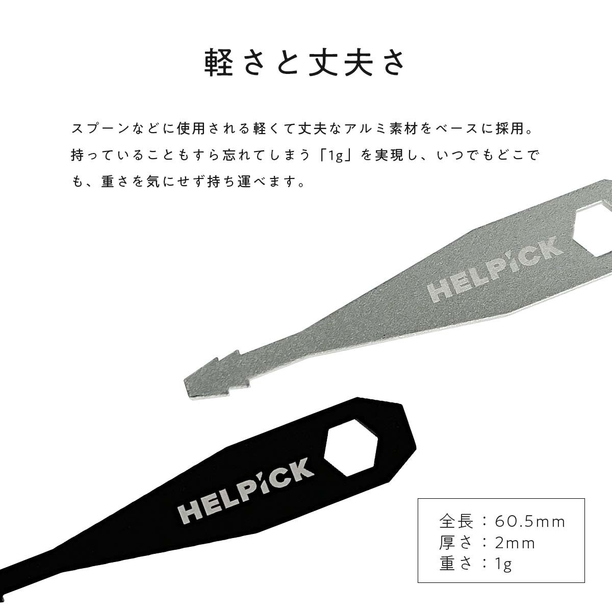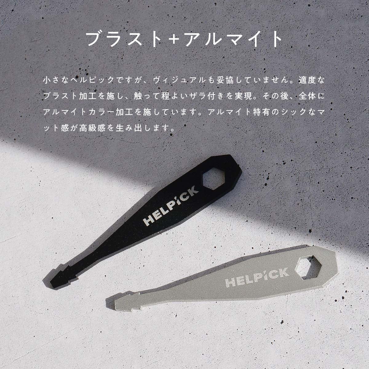 HELPiCK(ヘルピック)は、世界に誇る金物加工の街、新潟県燕三条で丁寧に作られています。スティックを引き抜く大事なポイントである「ダブル返し」は、1つ1つ職人の手によって研磨されています。また、全体にアルマイトカラー&ブラスト加工を施工し、徹底的な美しさも追求。所有欲を満たす燕三条メタルガジェットに仕上がっています。