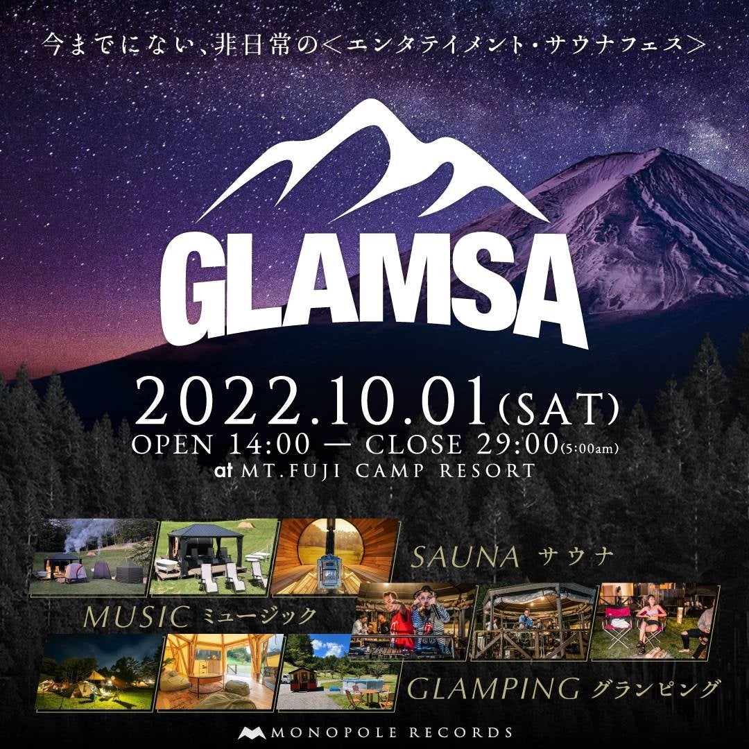 極上のグランピング×サウナ×音楽を体験できる史上初のエンターテイメント・サウナフェス「GLAMSA(グランサ)」を10月1日(土)に富士山の麓で開催