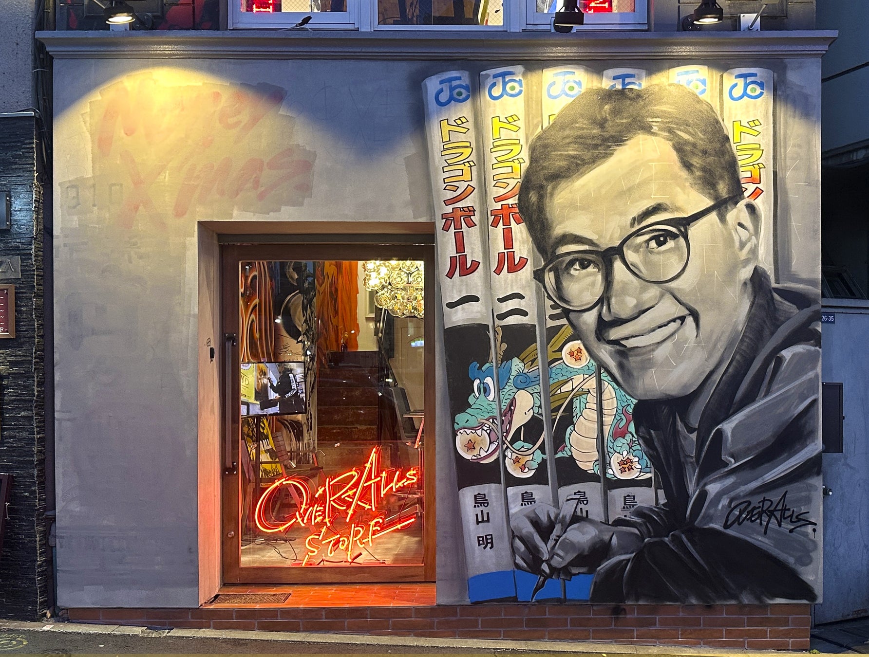 OVER ALLsが2024年最後のトーキョーミューラルスクエア壁画のモデルとして選んだのは鳥山明先生です。小学校の休み時間、ノートに描いた絵を初めて友達に「スゲェ!」と言われたのが、ドラゴンボールの孫悟空だった…そんなエピソードを持つアーティストはたくさんいるはず。そんな皆の夢のきっかけとなった鳥山明先生が空に旅立たれたのは今年、2024年の辰年でした。