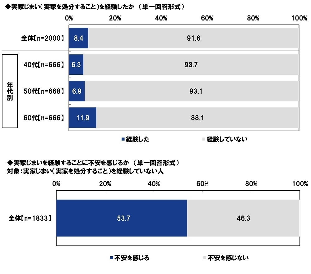 「実家じまいを経験した」1割弱、「経験することに不安を感じる」まだ経験していない人の5割半