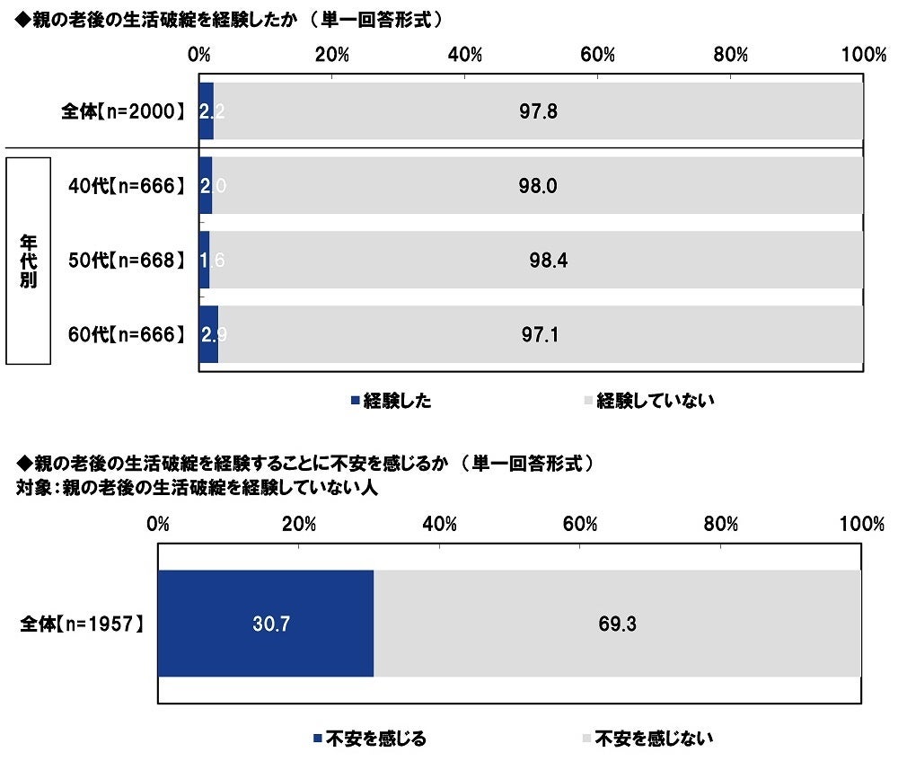 「親の老後の生活破綻を経験することに不安を感じる」まだ経験していない人の3割