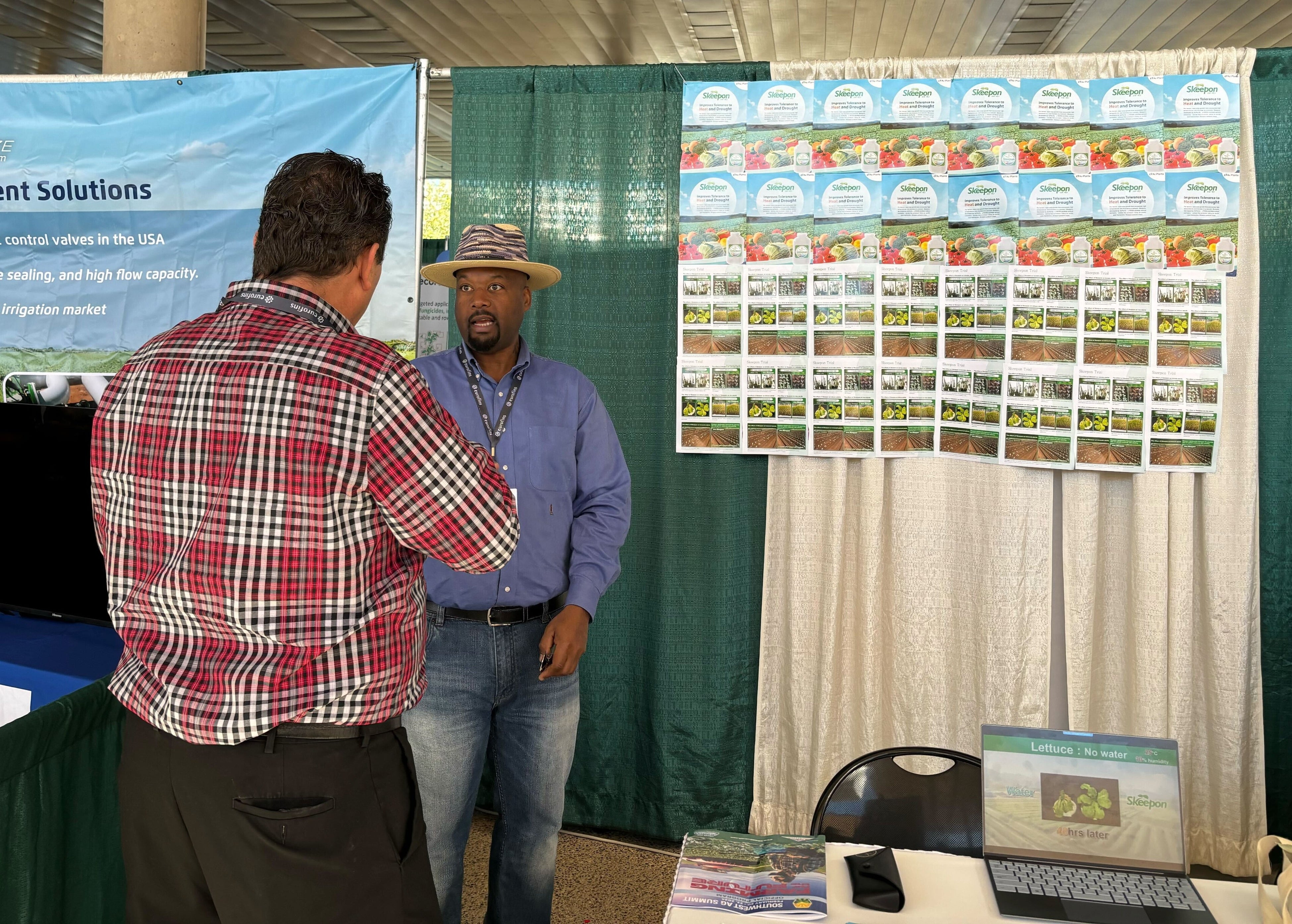 2023年12月、アクプランタ株式会社(CEO代表取締役社長:金鍾明、本社・東京都文京区)は米カンザス州の展示会に出展しました。昨夏は、カリフォルニア州などで深刻な水不足が発生し、作物の被害が相次ぎました。こうした現状を背景に、植物を高温・乾燥から強くするスキーポン(Skeepon)に興味を持ってくださる農家や農業関連企業の方が多く来場されており、スキーポンの効果を実際に見せてほしいという声を多くいただきました。