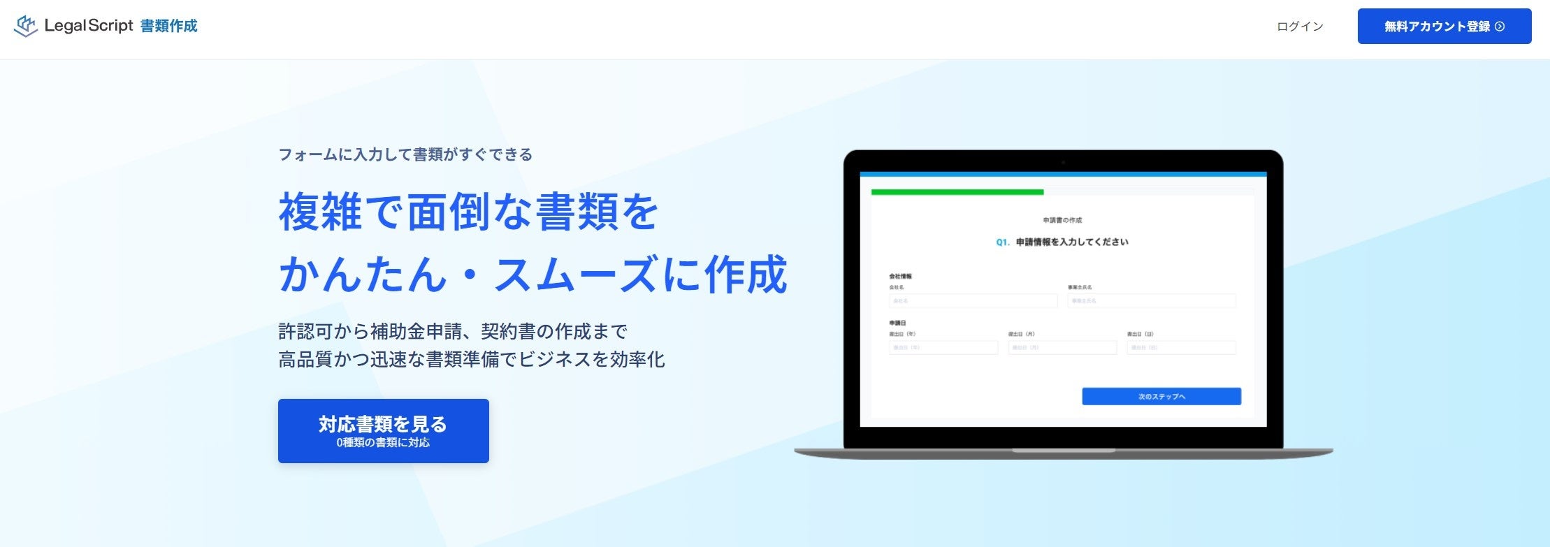 事業内容 :登記書類作成支援サービス『LegalScript』、特定技能受入診断サービス『特定技能雇用診断』等を提供
