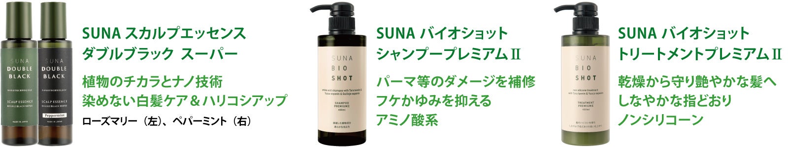 植物の力で染めずに白髪をケアするSUNA スカルプエッセンス ダブルブラック スーパー&頭皮環境を健やかに保つシャンプープレミアム&トリートメントプレミアム