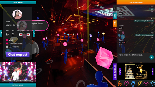 DiscoverFeedは「デジタルツイン」技術を活用することで、本物さながらのバーチャルナイトクラブをメタバース上に創出し、バーチャルクラブを中心としその周辺にショッピングモール、ゲームセンター、公園、ギャラリー、観光名所を構築する都市開発プロジェクトだ。クラブカルチャーとWeb3の融合をテーマに、今後、世界75カ所のナイトクラブをメタバース空間内に創出する予定。PCやスマートフォンのブラウザからアクセスできる軽量なサービスとして「誰でも、いつでも、どこでも」利用できるメタバース空間の提供を目指しており、実際にナイトクラブに行きたいけど行くことのできない海外、地方住民や、深夜に出歩くことが難しい主婦、実際のクラブでは入場が禁止されている未成年にも“新たなナイトクラブ体験の場”を提供する。