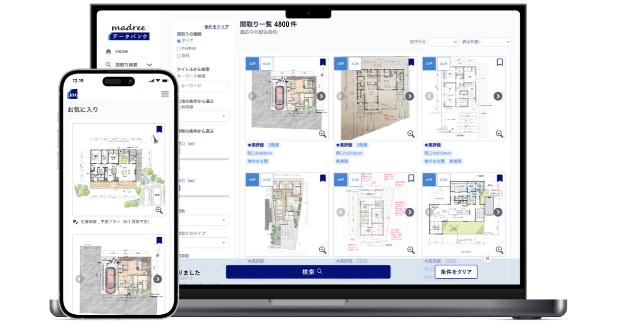 実は同社には、約6,000プランの間取りを検索できる自社システムが存在していました。しかし、そのシステムは15年前に開発されたもので、トレンド感が薄いため近年のニーズを捉えきれないという課題がありました。そこで、数年前から長期にわたって新システムも調査していたところ、『madreeデータバンク』の存在を知り、導入を検討いただけることに。