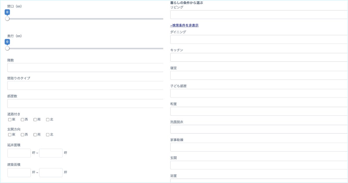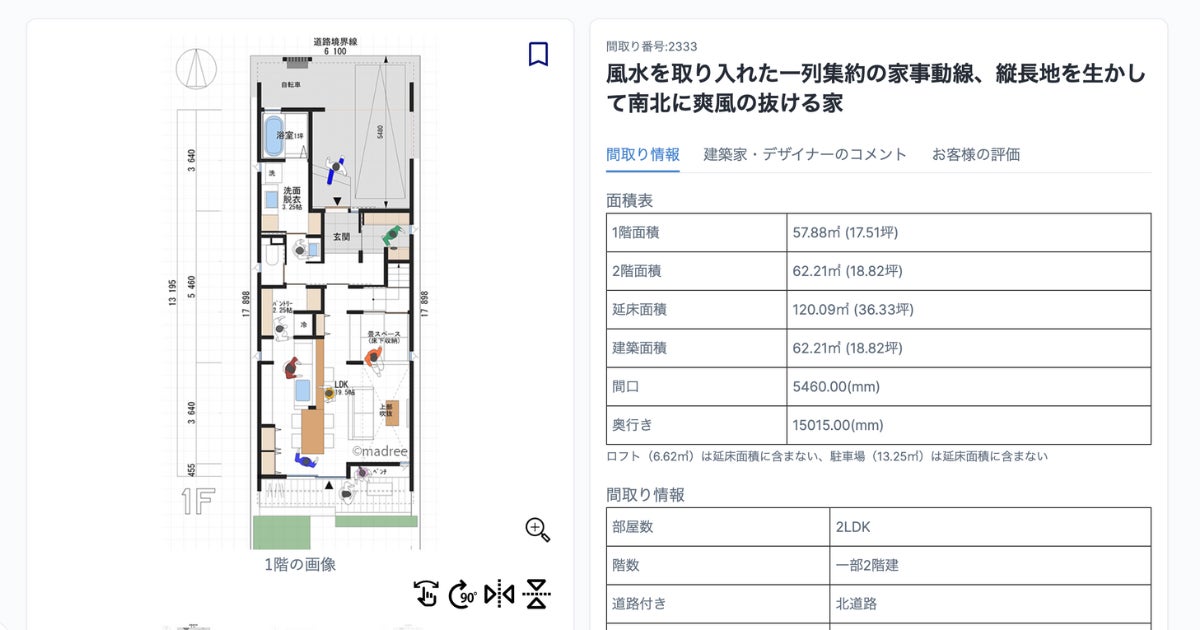 自社システムの検索軸は「間口の広さや、2階建・3階建」といったシンプルなものだったところ、『madreeデータバンク』の検索軸は多く、お客様に最適なプランを検索・提案しやすい点