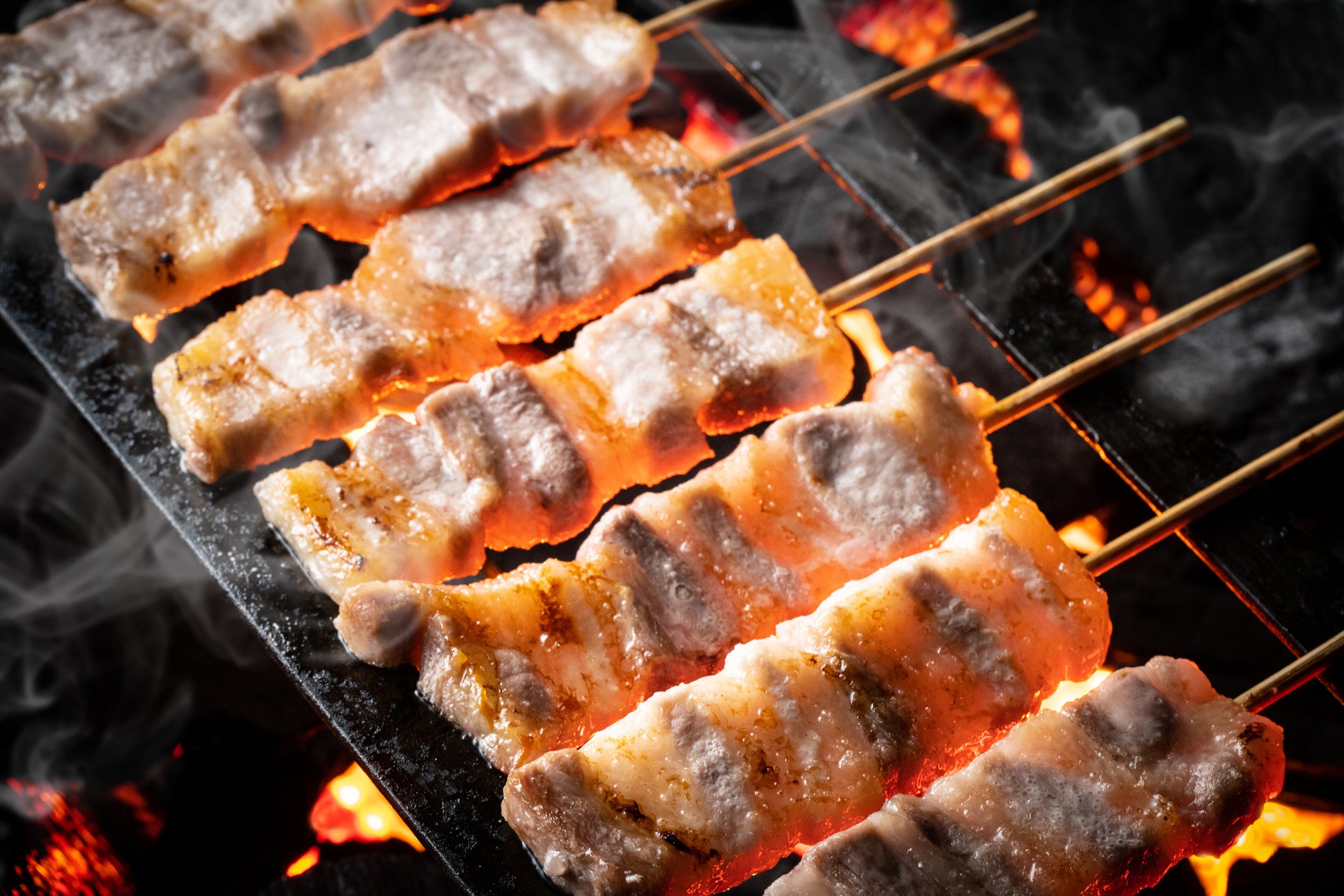 黒豚のバラ肉は脂が違います。甘みがありさっぱりしてるので14mmの厚切カットし串に刺して食べやすくしました。