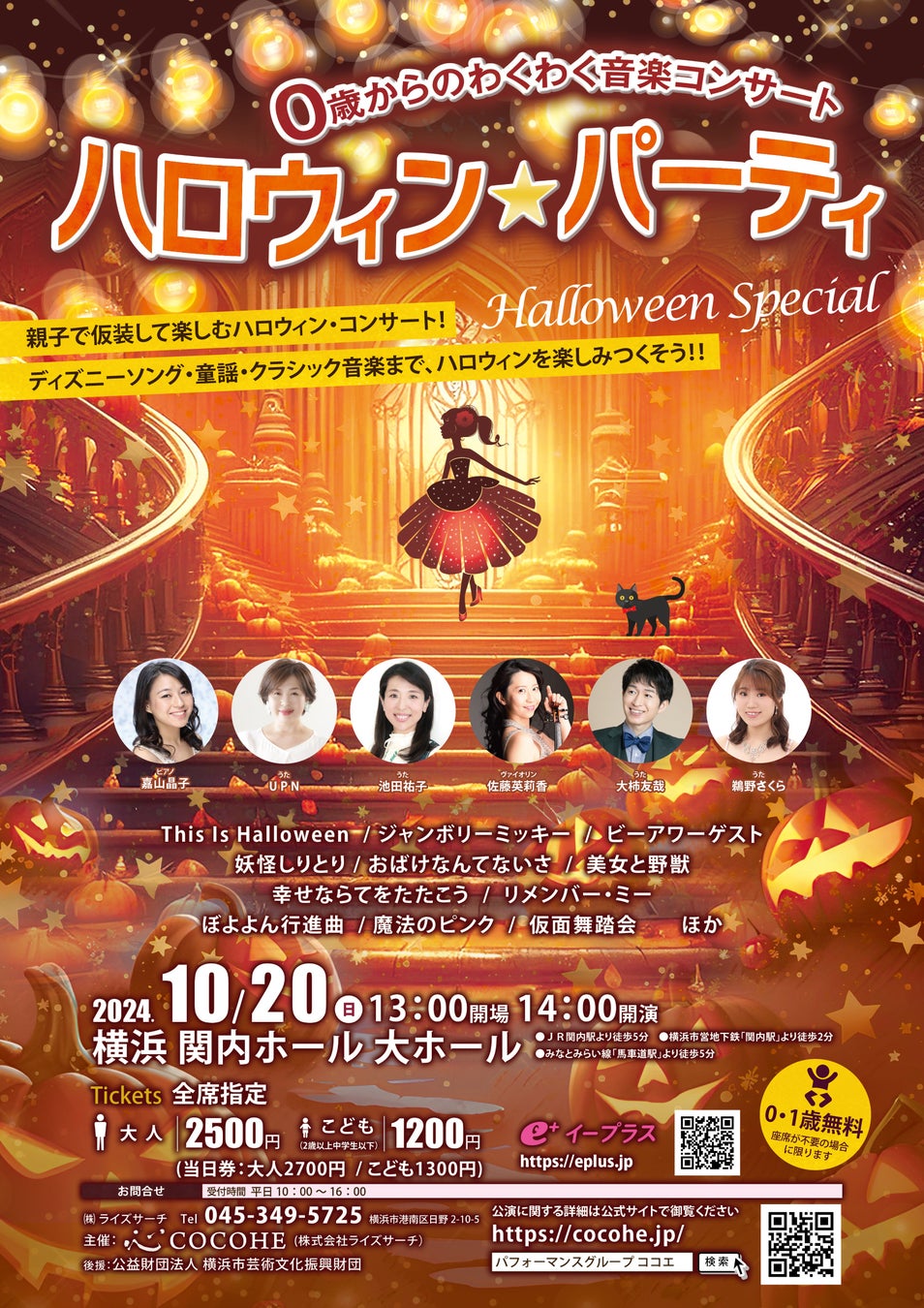 0歳からのわくわく音楽コンサート「COCOHE(ココエ)」を運営する株式会社ライズサーチ(所在地:横浜市港南区 代表取締役 内田奈津子)は、2024年10月20日(日)横浜市の関内ホール 大ホールにて、「ハロウィン」をテーマにしたファミリーコンサート「ハロウィン★パーティ」を開催します。