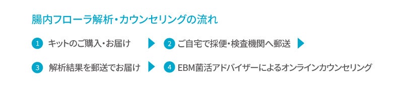 さらに解析後は、認定を受けたEBM菌活アドバイザーによる、オンラインカウンセリングが受けられます。カウンセリングでは解析結果の解説とともにお一人おひとりにとって最適な食生活や生活習慣もアドバイス。創業より37年間人の美と健康づくりに向き合い、450万人以上の肌と身体を見てきた基礎化粧品会社イービーエムならではの、お一人おひとりに寄り添ったカウンセリングサービスで、フローラ解析をご自身の生活に最大限に活かしていただけるようサポートします。