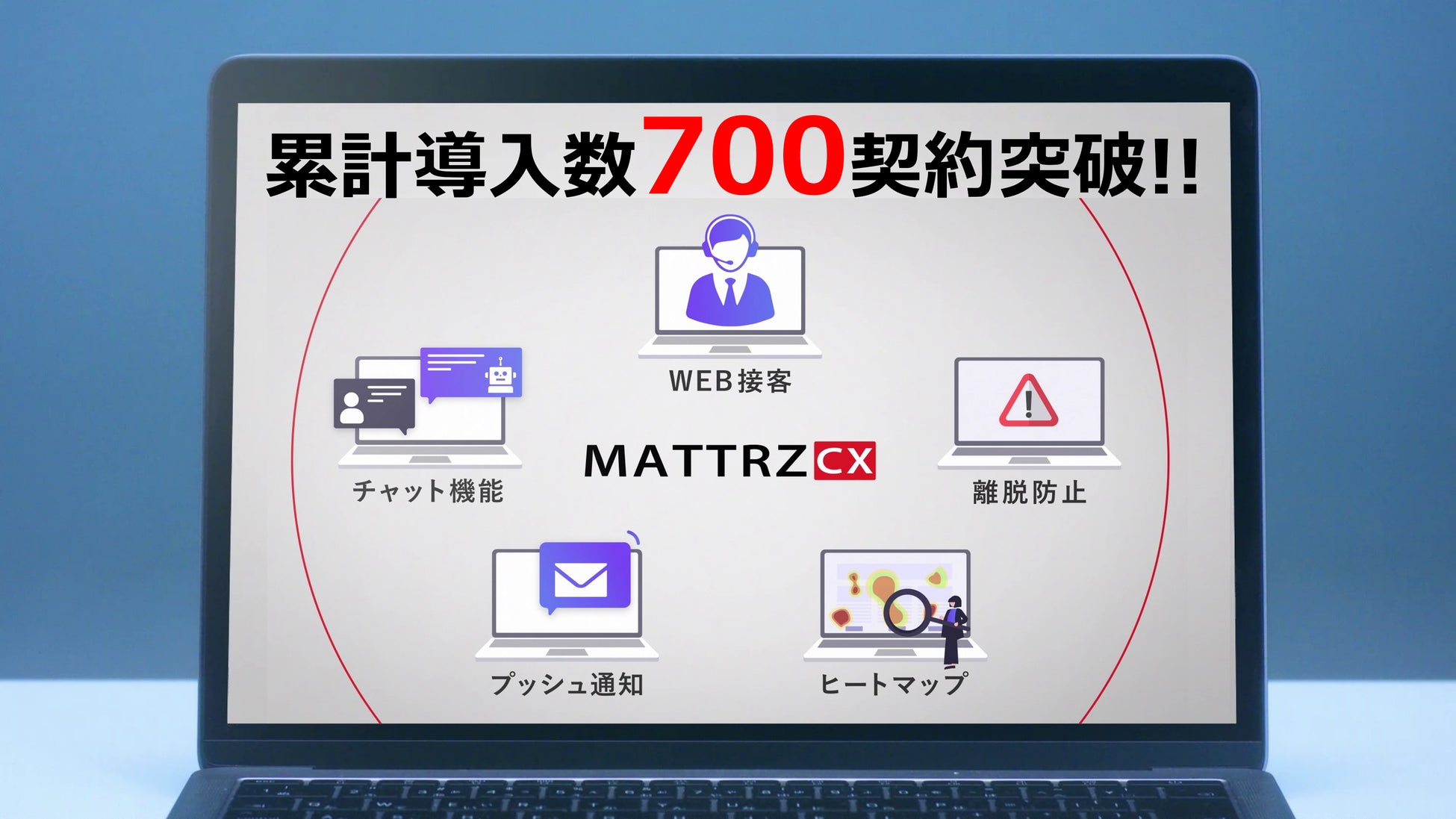 統合マーケティングツール「MATTRZ CX(マターズ シーエックス」は、2018 年にサービスを開始しましたが、WEBサイト改善に向けた豊富な機能をワンストップかつ低価格で活用できることが高く評価され、わずか4年1か月で累計700契約を超えるお客様に導入いただいております。